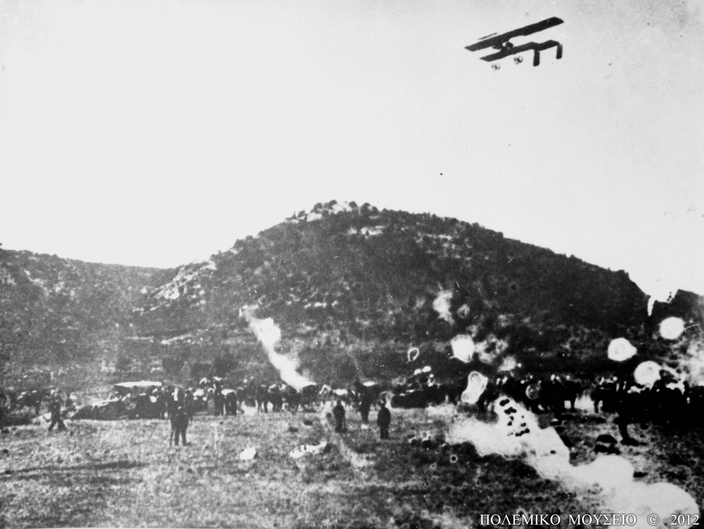Βαλκανικοί Πόλεμοι. Το Δαίδαλος του Α. Καμπέρου πετάει πάνω από τις ελληνικές δυνάμεις στο Μέτωπο Θεσσαλίας.